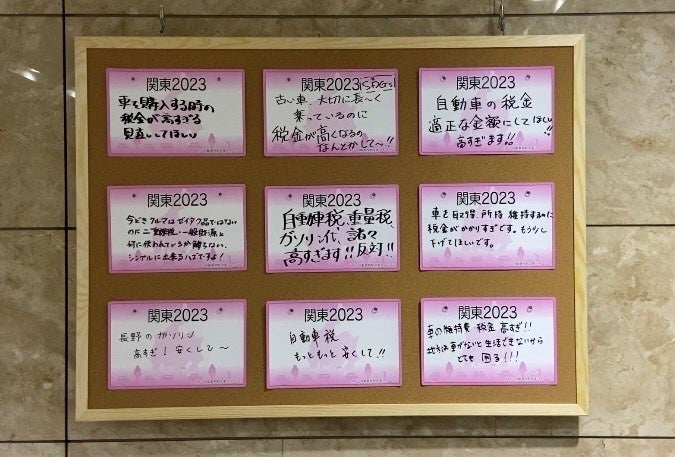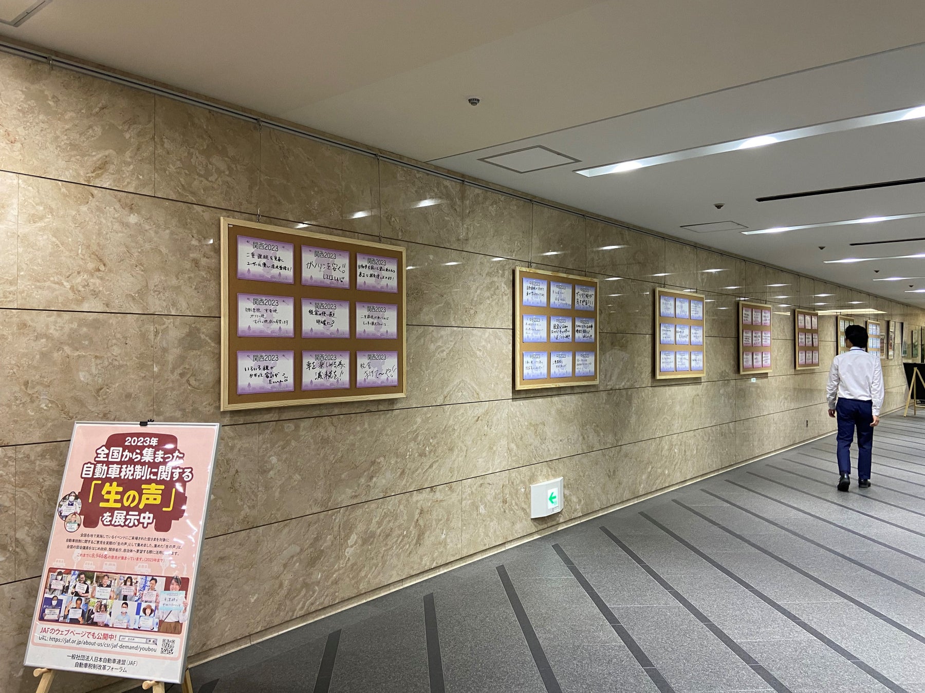 JAF(一般社団法人日本自動車連盟 会長 坂口正芳)と自動車税制改革フォーラム(自動車関連21団体で構成)は、自動車税制に関する要望活動の一環として全国のイベント会場で集めた自動車ユーザーの「生の声」11月15日(水)より日本自動車会館に展示しています。
