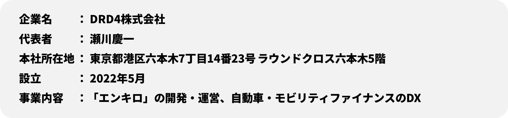 「人の移動欲求に応える」をミッションに、自動車・モビリティファイナンスのDX (デジタルトランスフォーメーション)に取り組むDRD4株式会社 (本社:東京都港区、代表取締役:瀬川慶一)は、走行距離に応じた支払いでマイカーをご利用いただけるサービス「エンキロ」の提供を、沖縄県・離島・一部地域を除く全県に拡大いたします。