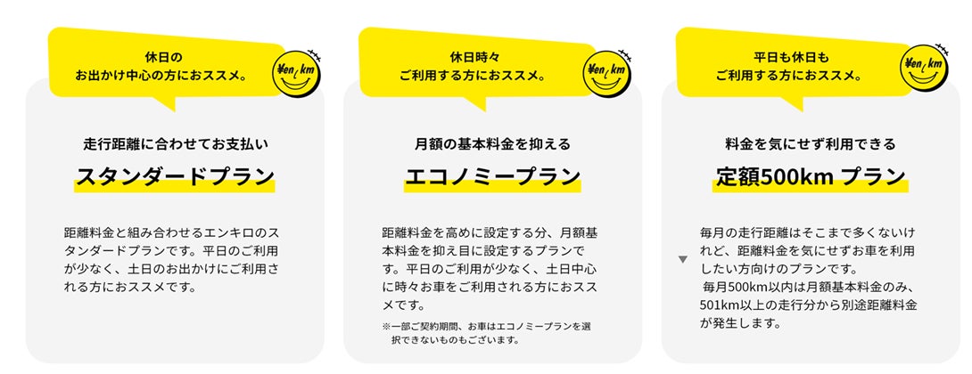 ② エコノミープラン :スタンダードプランと比較して距離料金の単価を高めに設定する代わりに月額基本料金を抑えたプラン。