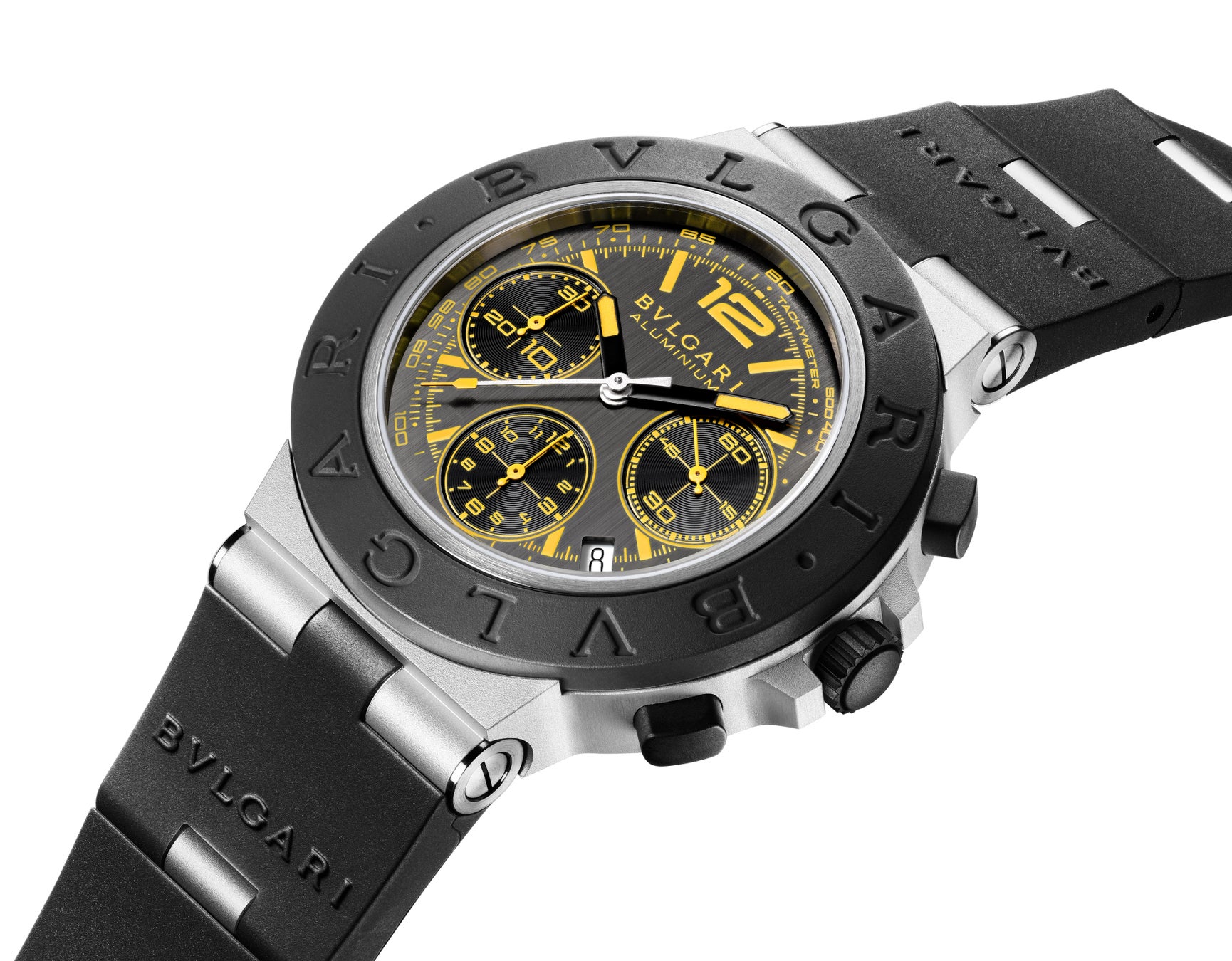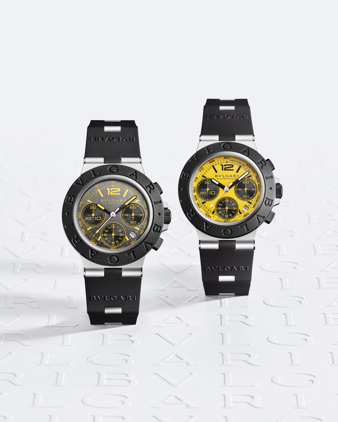 「ブルガリ アルミニウム グランツーリスモ 限定モデル」は、イエローのダイヤルにブラックのカウンターを合わせた限定500本のモデルと、アンスラサイトのダイヤルにイエローのインデックスが施された限定1200本の2つのコレクションを展開します。自動巻きムーブメントが搭載された2020年のコレクション以来初となるタキメータースケールを配しスピードの世界への敬意をこめています。ブルガリのマニュファクチュールによって設計、開発、製造された自動巻きクロノグラフキャリバーB381は、スリリングなレースのタイムを計測するのに最適なムーブメントです。