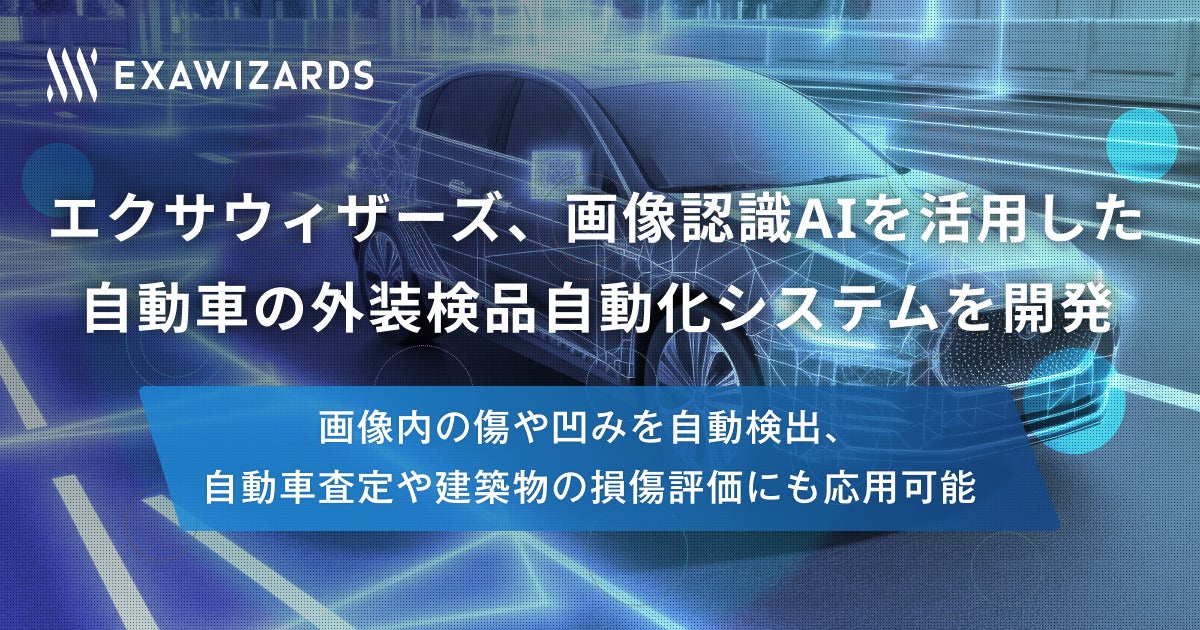 株式会社エクサウィザーズ(東京都港区、代表取締役社長:春田 真、以下エクサウィザーズ)は、画像から領域ごとの状態を自動識別するAIモデルおよび同モデルを活用した自動車の外装検品自動化システムを開発したことをお知らせします。これにより、従来人間が目視で行っていた検品作業や品質管理などの業務を効率性と均質性の両面から高度化することが可能となります。