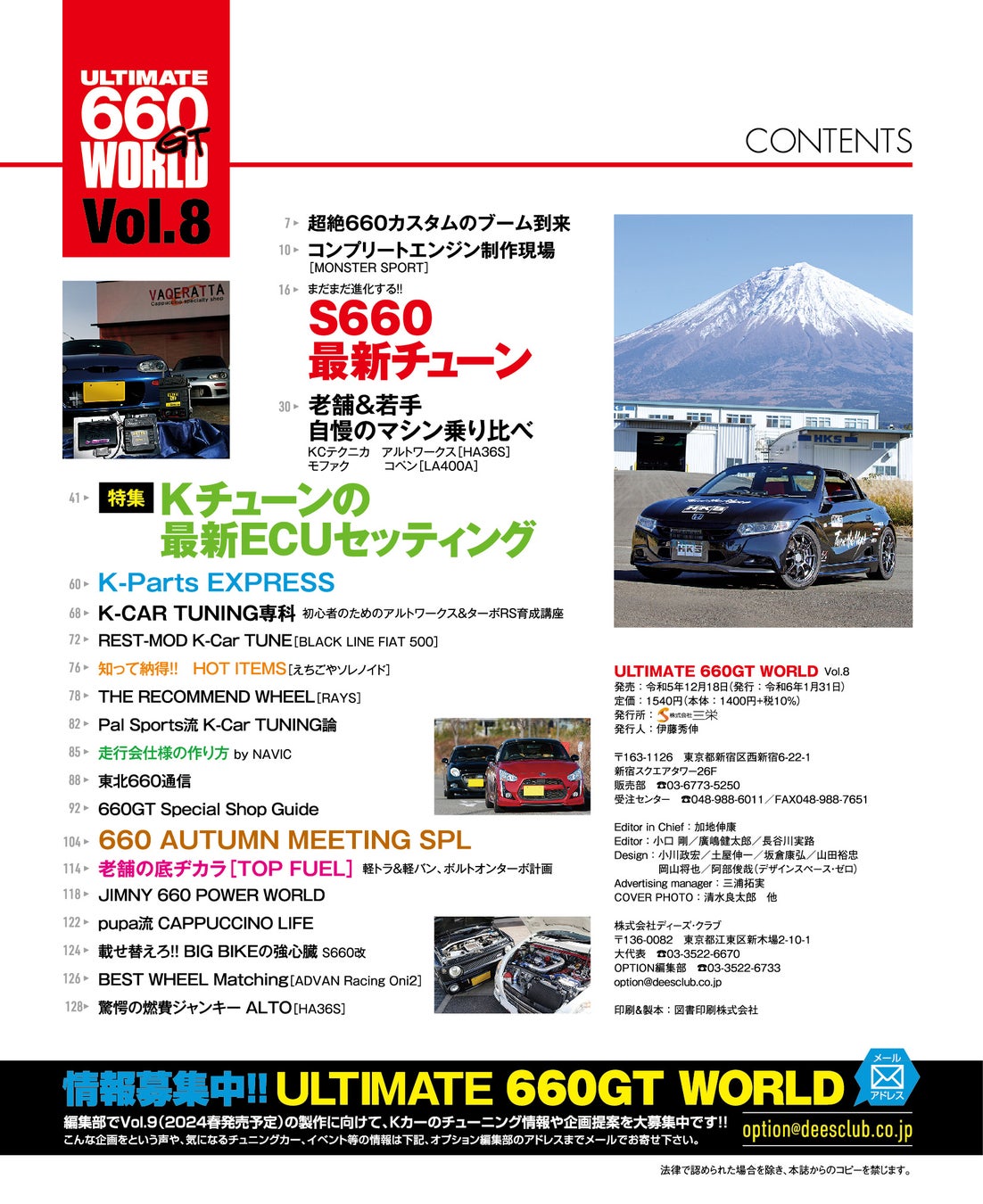 株式会社三栄(本社所在地:東京都新宿区、代表取締役社長:伊藤秀伸)は、2023年12月18日より『ULTIMATE 660GT WORLD Vol.8』を発売いたします。