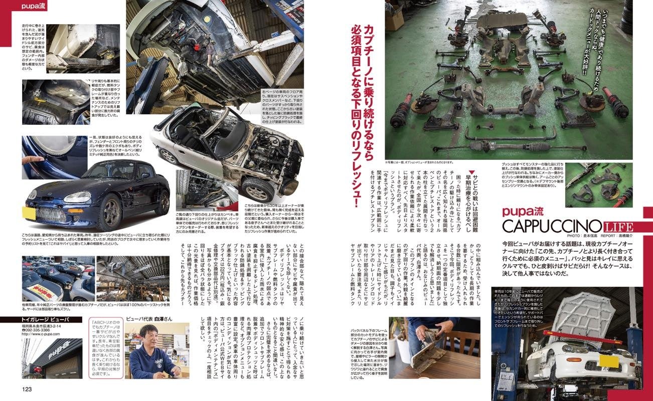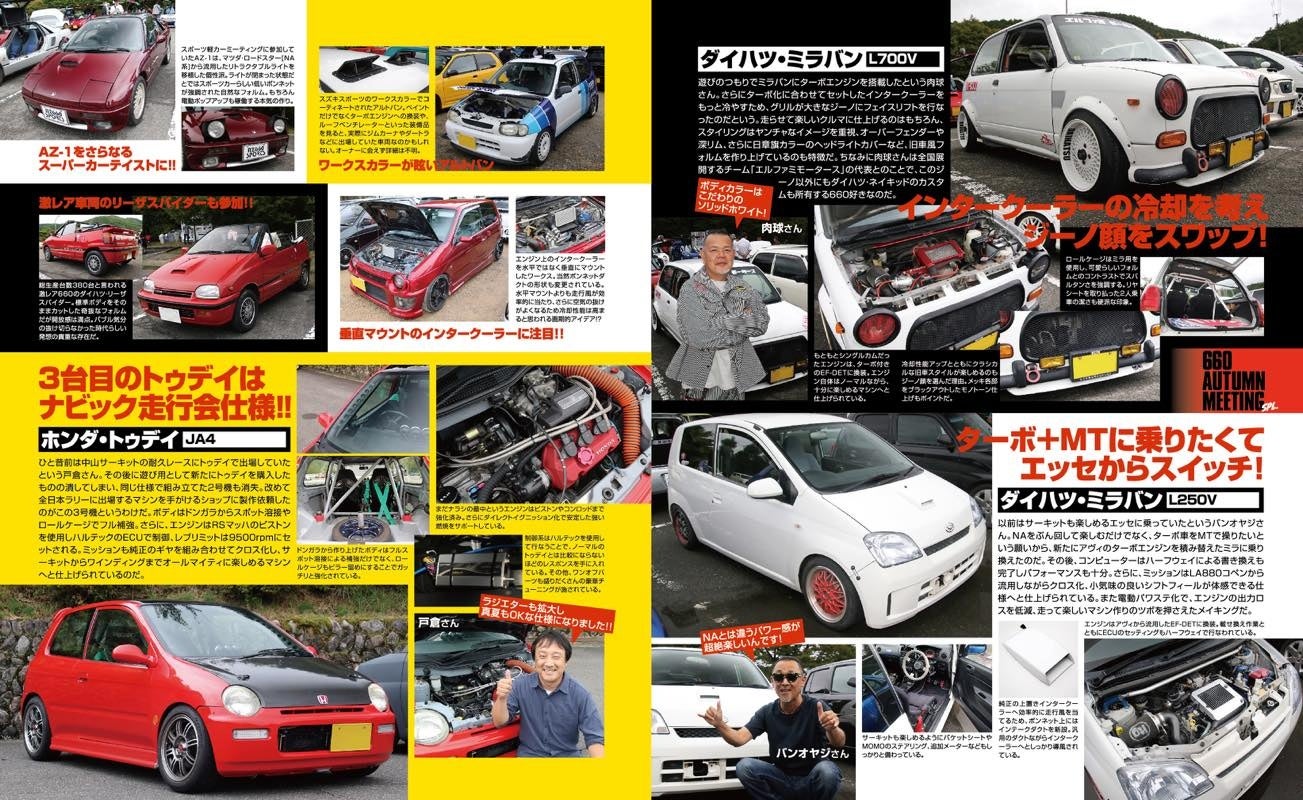 まだまだ人気がある旧モデルのABC(アルト、ビート、カプチーノ)も積極取材。年式の落ちた車両に向けては、メンテナンスやリフレッシュ、レストアに関する指南ページも展開。