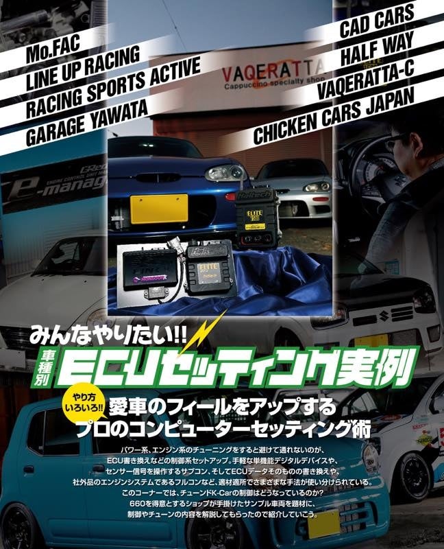 車両の潜在能力を引き出すために必要不可欠となるECUのセットアップ。その手法はさまざまで、車や仕様によっても最適プランが異なってくる。今号では、特集として車種仕様によるセットアップメニューがどう展開されているか? 多数の事例を紹介。