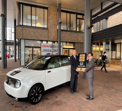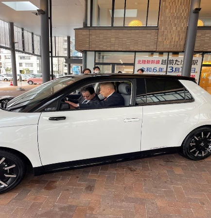 当行と株式会社RCG(代表取締役 天間 幸生)が連携するビジネスマッチング業務を通じて、ホンダカーズ福井株式会社(本社:福井県福井市 代表取締役会長 松井 誠)より、福井県越前市の「まち・ひと・しごと創生総合戦略」の「交流・関係人口拡大とイメージアップ」事業に、EV自動車(商品名:Honda e)の寄附が行われましたのでお知らせいたします。