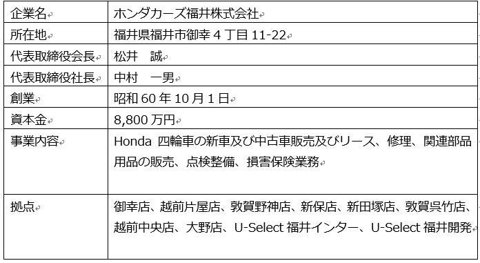 【ホンダカーズ福井株式会社の概要】