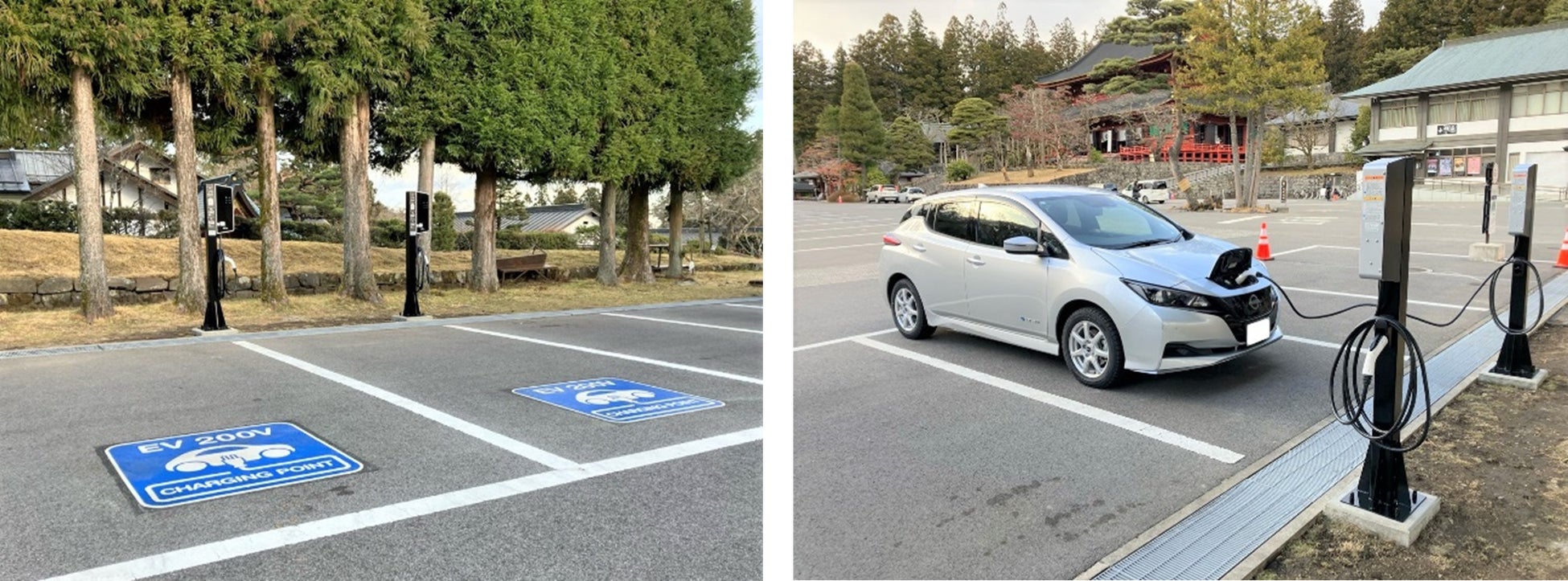 この度ご導入いただいたEV充電器は、輪王寺の第1駐車場内に2台設置されています。