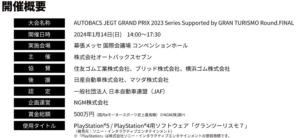 ブリッド株式会社(愛知県東海市、代表取締役社長:高瀬嶺生)は、eモータースポーツの2023年公式シリーズ「AUTOBACS JEGT GRAND PRIX 2023 Series」大会スポンサーとして協賛しており、そのトップリーグ最終戦が、世界屈指のカスタムカーショー【東京オートサロン2024】内で、1月14日に開催されることをお知らせします。