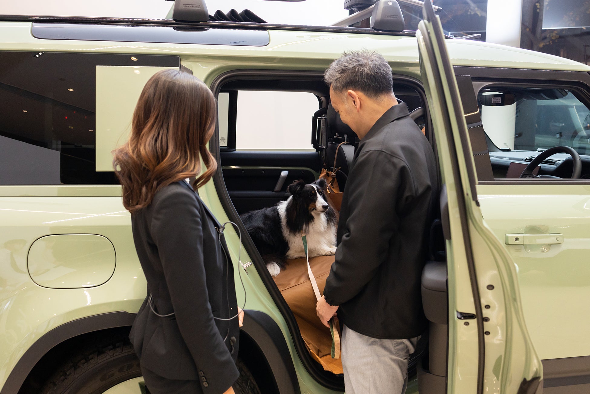「犬と一緒にクルマ選びがしたい」という愛犬家のお客様からの声から、カーディーラー業界に先駆けて犬連れでの入店を可能に。愛犬と一緒に乗り降り体験ができるほか、愛犬用アクセサリーもお試しいただけます。