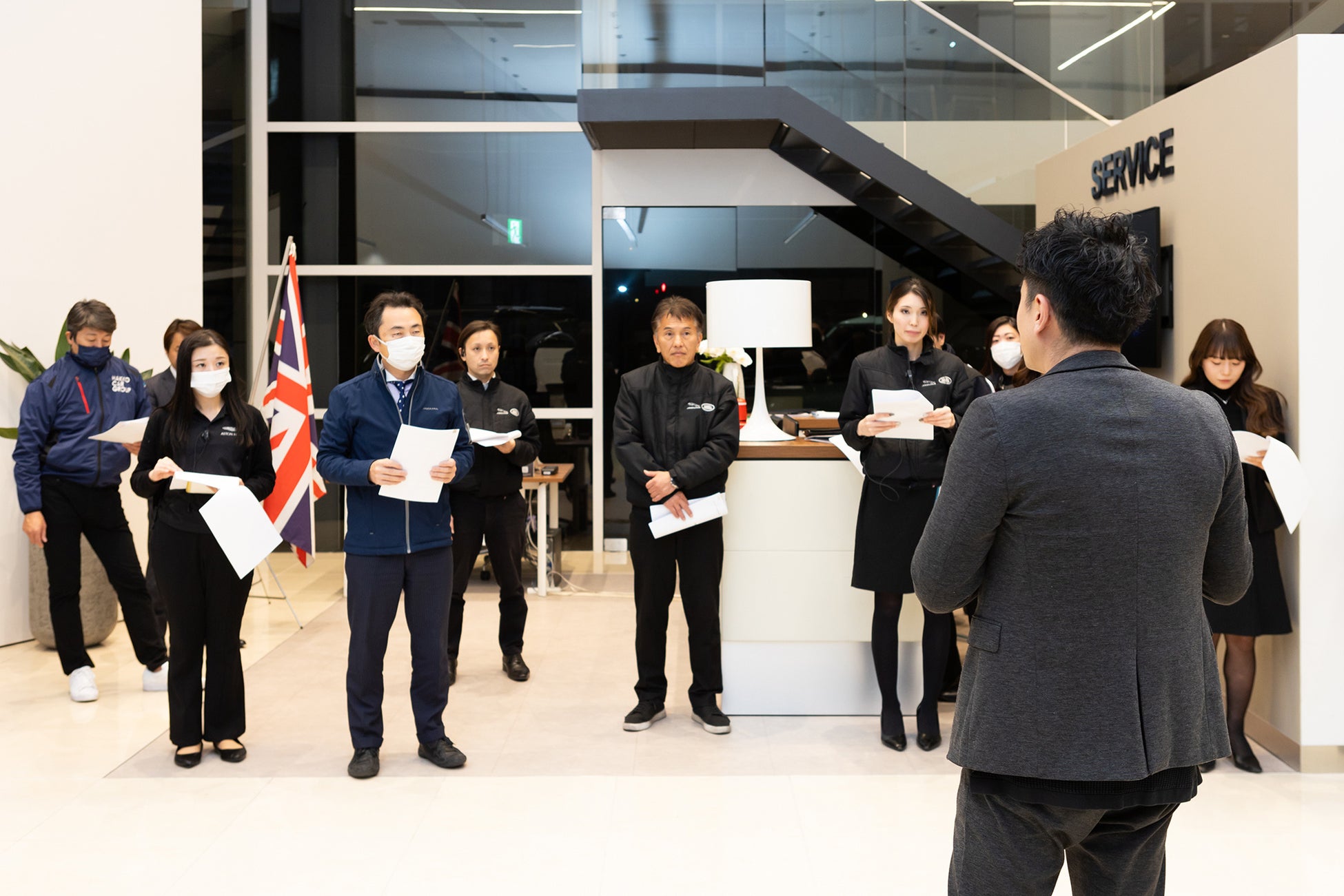 サービス開始前には、ディーラースタッフによるロールプレイング研修も実施。作成したマニュアルをもとに、お客さまにもワンちゃんにも店内で快適に過ごしていただくための接客ルールなどを全員で学びました。