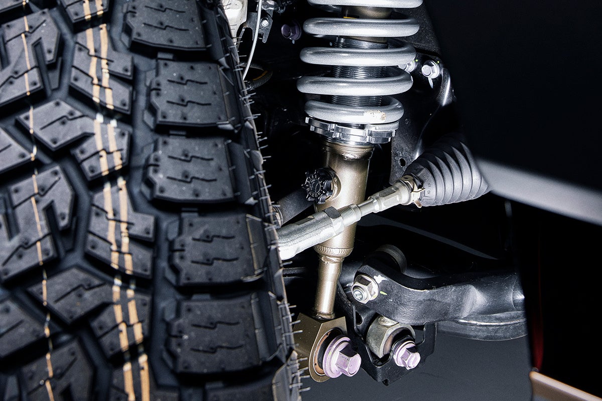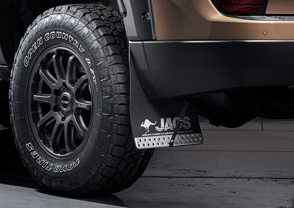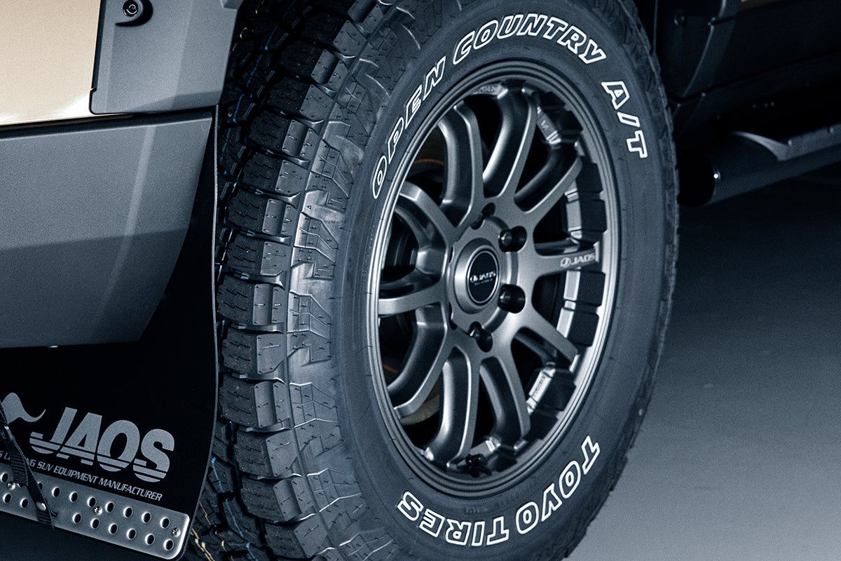 JAOSのラリーレイドプロジェクト「TEAM JAOS」のラリーマシン用に開発されているホイール「JAOS TRIBEシリーズ」は、国内外でトップシェアを誇るアルミホイールメーカー「ENKEI(エンケイ株式会社)」と共同開発を行っているハイパフォーマンスホイール。その最新モデルである「CROSS」をベースに、GX550およびランドクルーザー専用として18インチ化しました。