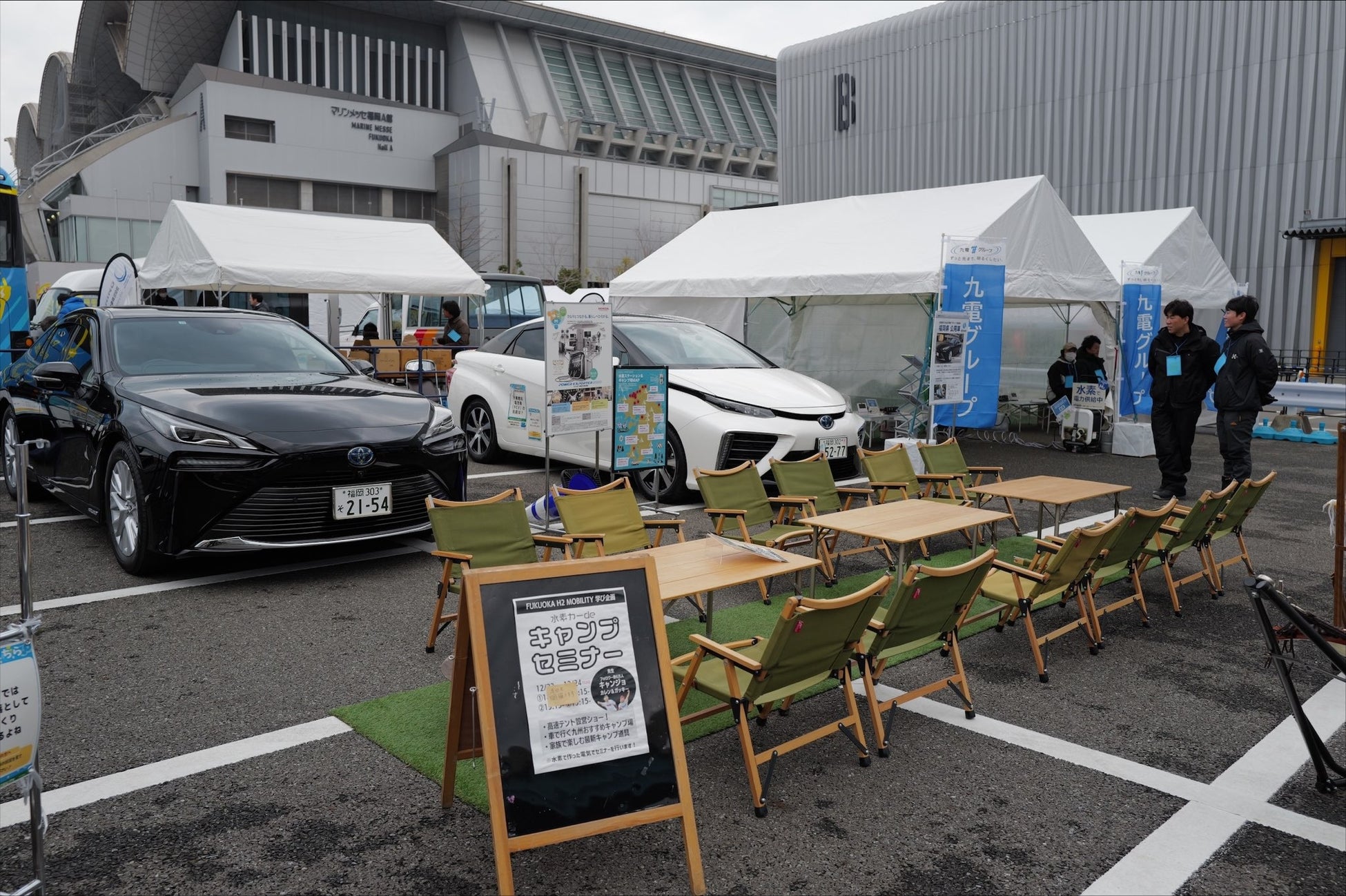 会場内にある水素で動く自動車の解説や、MIRAIで行く九州キャンプをテーマにセミナーも実施しました。