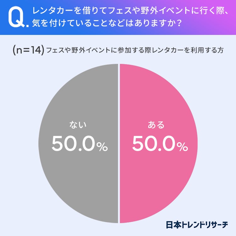 ■50%がレンタカーを借りてフェスや野外イベントに行く際、気を付けていることが「ある」