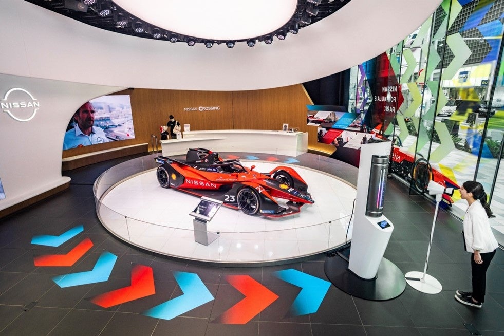 - コンテンツ:フォーミュラEレーシングシュミレーター、パワーセルフィ―、フォーミュラEと日産/日産の電気自動車の歩みパネル展示、シリンダー型ショーケースの展示など