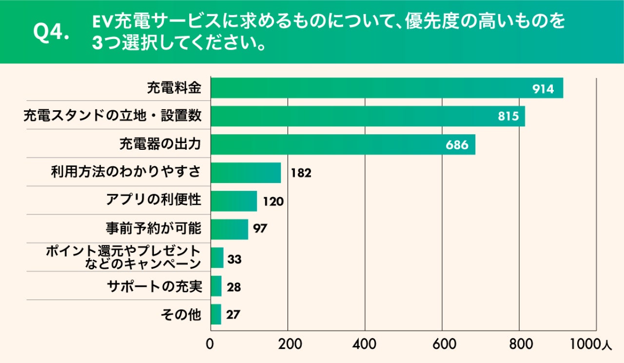 EV充電サービスについては、まだまだ多くの反映すべき要望があることがわかりました。