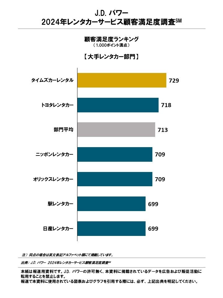 J.D. パワー 2024年レンタカーサービス顧客満足度No.1を発表