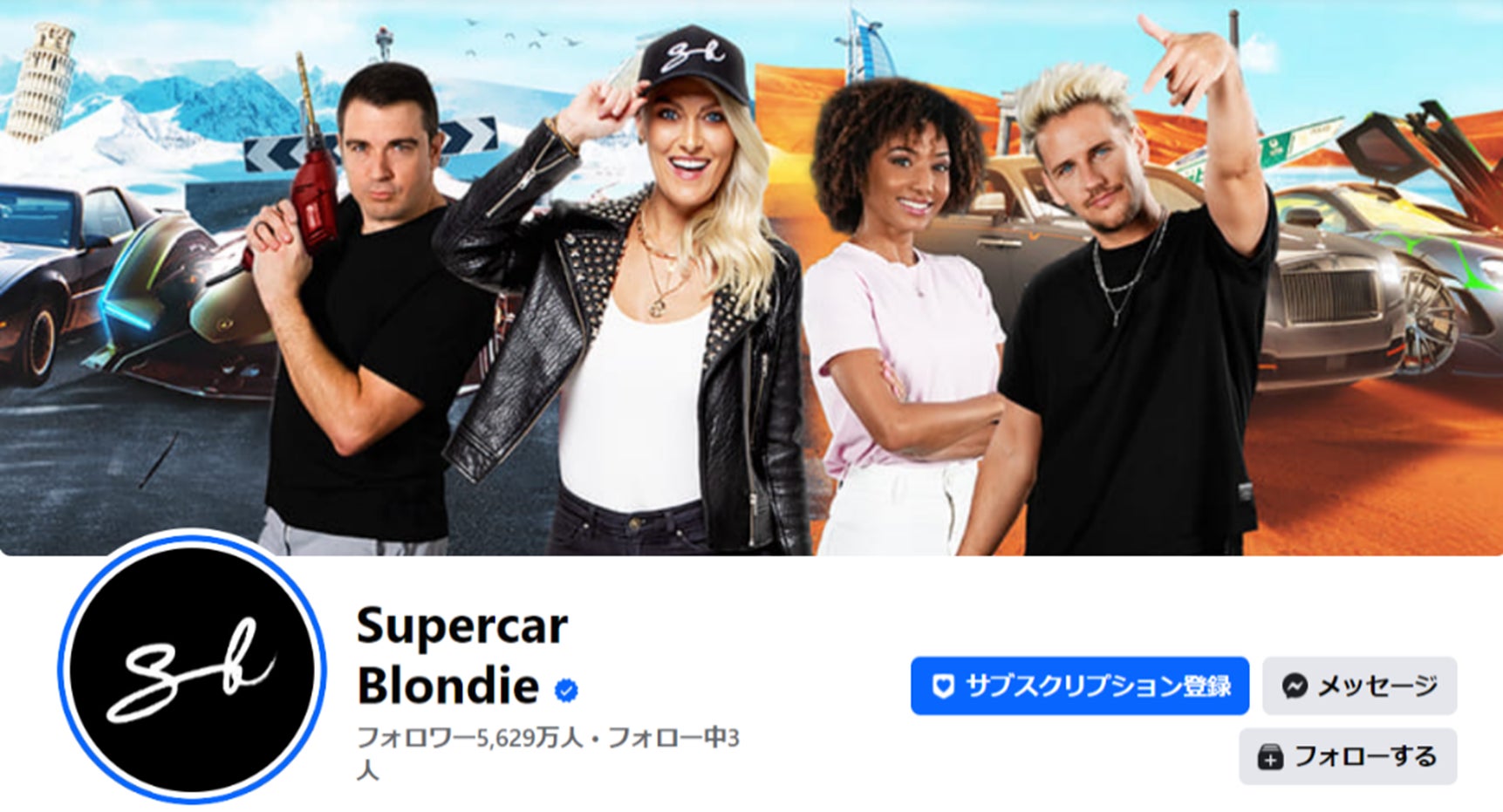 Facebook(https://www.facebook.com/supercarblondie/): 5600万人