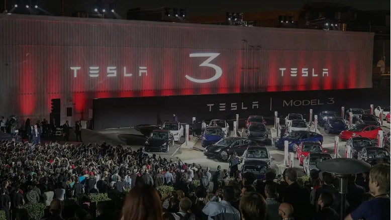 Model 3が世界デビューした2016年、全世界のテスラストアの前には予約を待つ行列ができ、先行予約数は1日を経たずして11万5,000件を突破しました。そして、シンプルなデザイン、パワフルな加速性能、長い航続距離や、今までにないテクノロジーにより、Model 3はわずか4年間で世界初の累計販売台数100万台を超える電気自動車となりました。