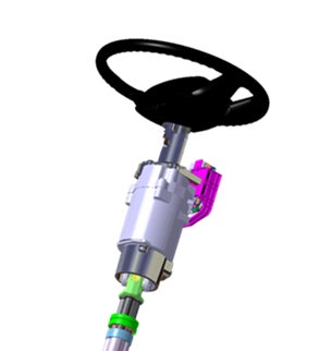 油圧式パワーステアリング搭載の商用車に組み合わせて、AD/ADASに貢献する操舵アクチュエーターです。コラム部に搭載するため、低床の商用車でも床面との干渉が発生せず床面改造に比べると小規模な改造で使用することができます。既販車を含めたあらゆる商用車のAD/ADAS対応を可能とし、自動運転レベル2に相当するレーンキープアシストにも対応するなど、商用車ドライバーの負荷軽減と安全性の向上に貢献します。