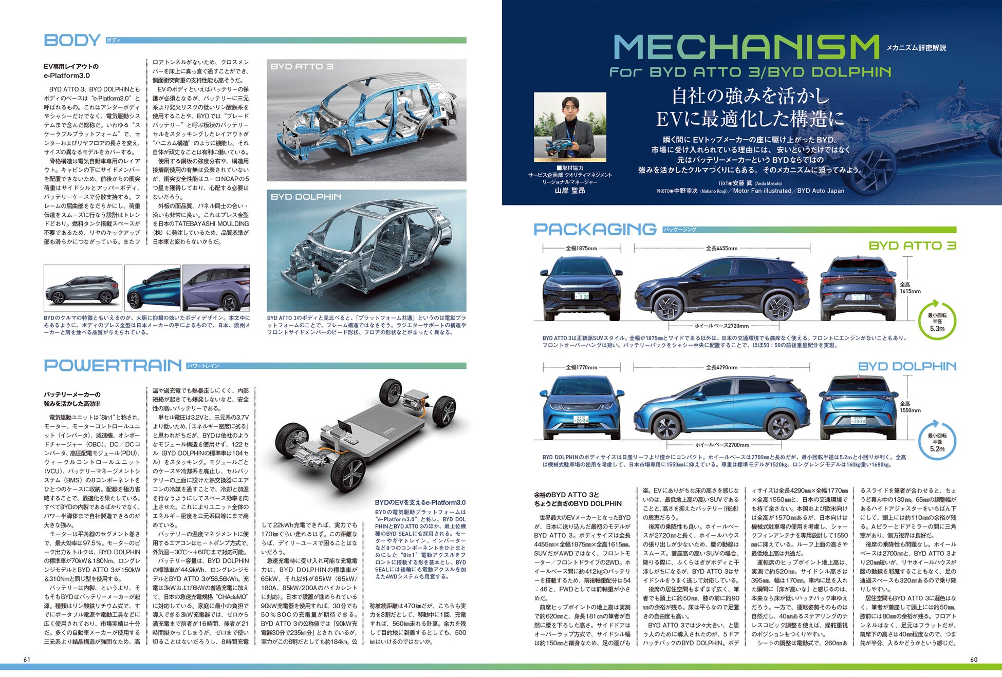 BYDのBEVに投入されたテクノロジーの数々を細かく、そしてわかりやすく解説。BYDが誇る最先端のバッテリー技術「ブレードバッテリー」などをクローズアップしています。