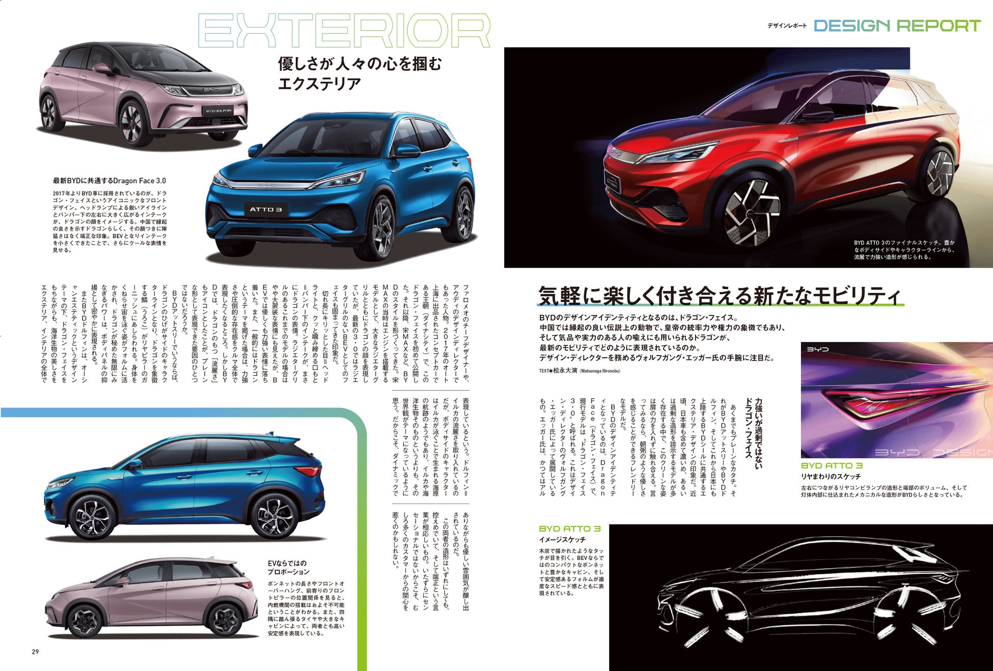BYDのデザインを統括しているのは、かつてアルファロメオやアウディで辣腕をふるったヴォルフガング・エッガー氏。彼が提唱するデザイン・アイデンティティ「ドラゴン・フェイス」がどのように実車で表現されているのか、解き明かしています。
