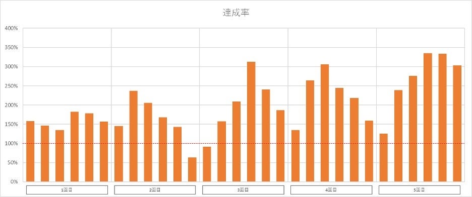 成果 :全5回の発動が実施。30コマ中28コマで目標値を達成