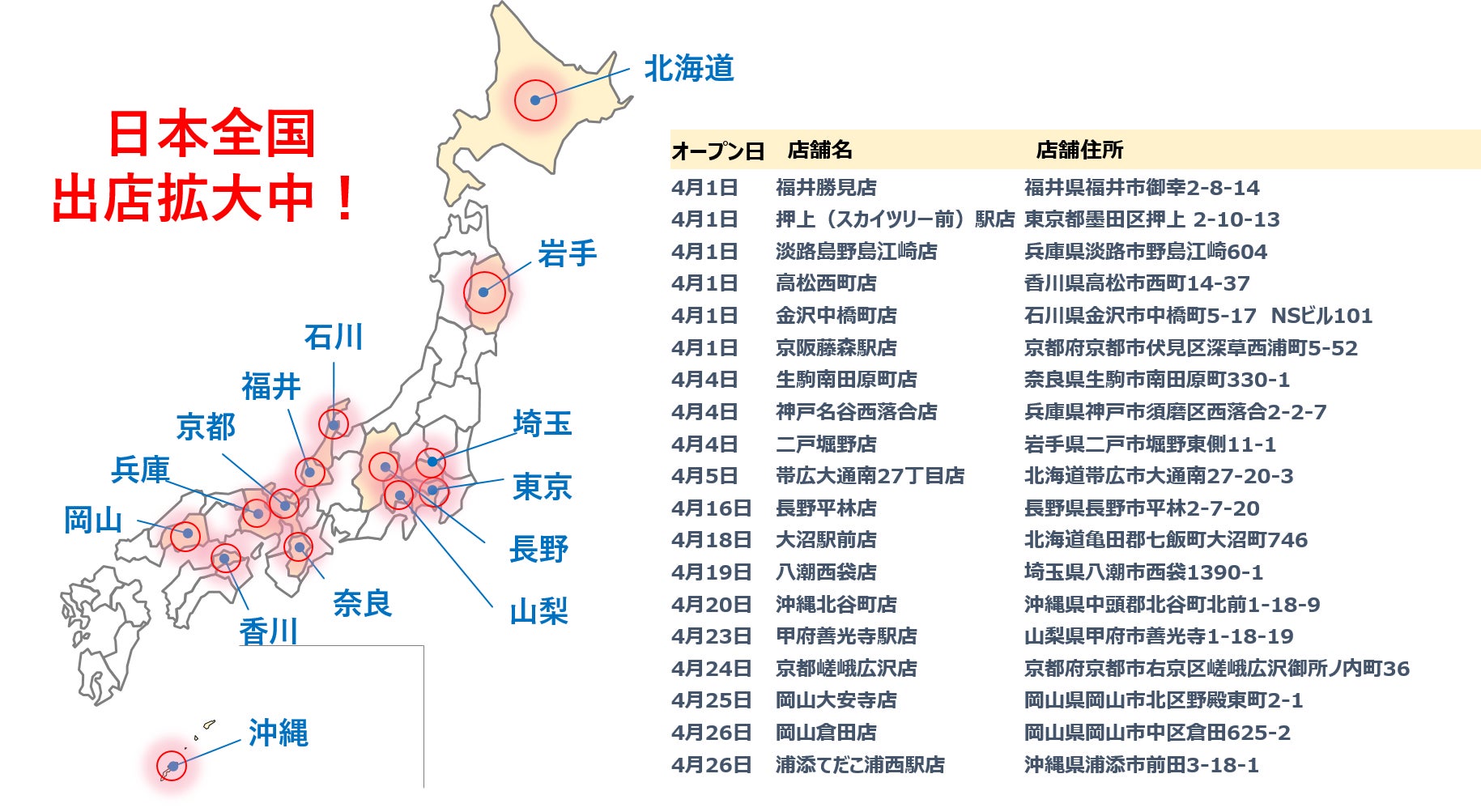 に19店舗をオープンし、全国の店舗数は1,427店になりました。