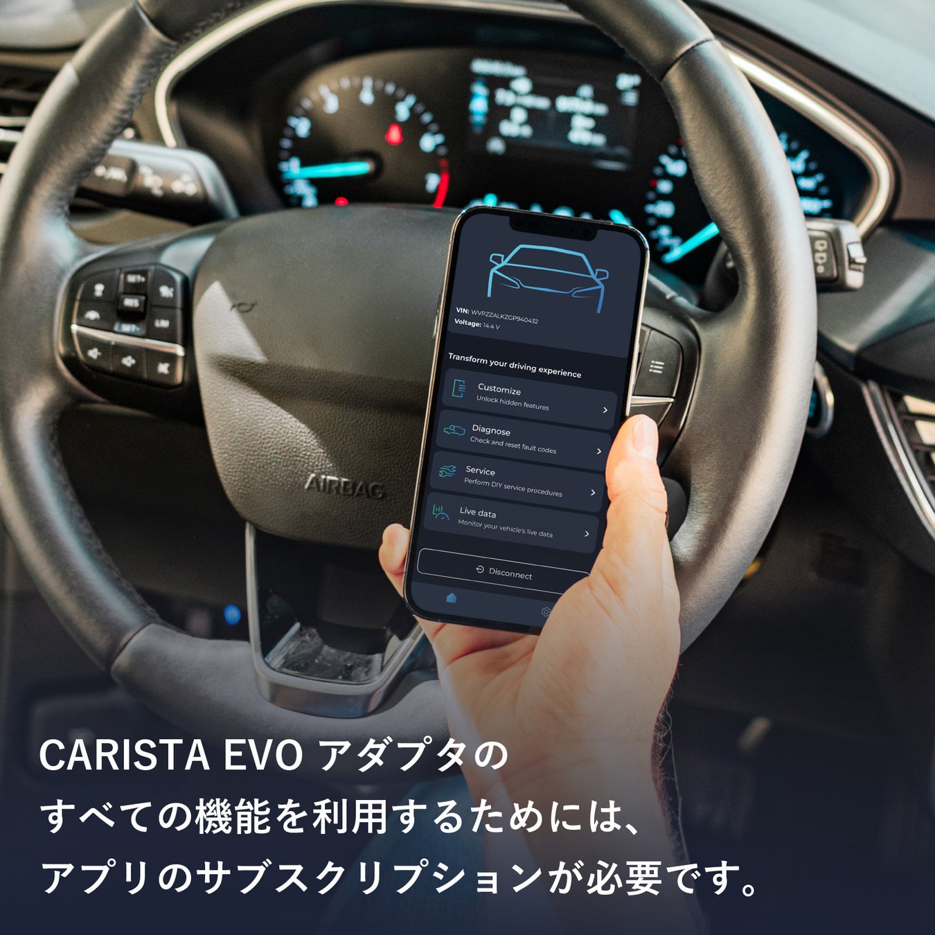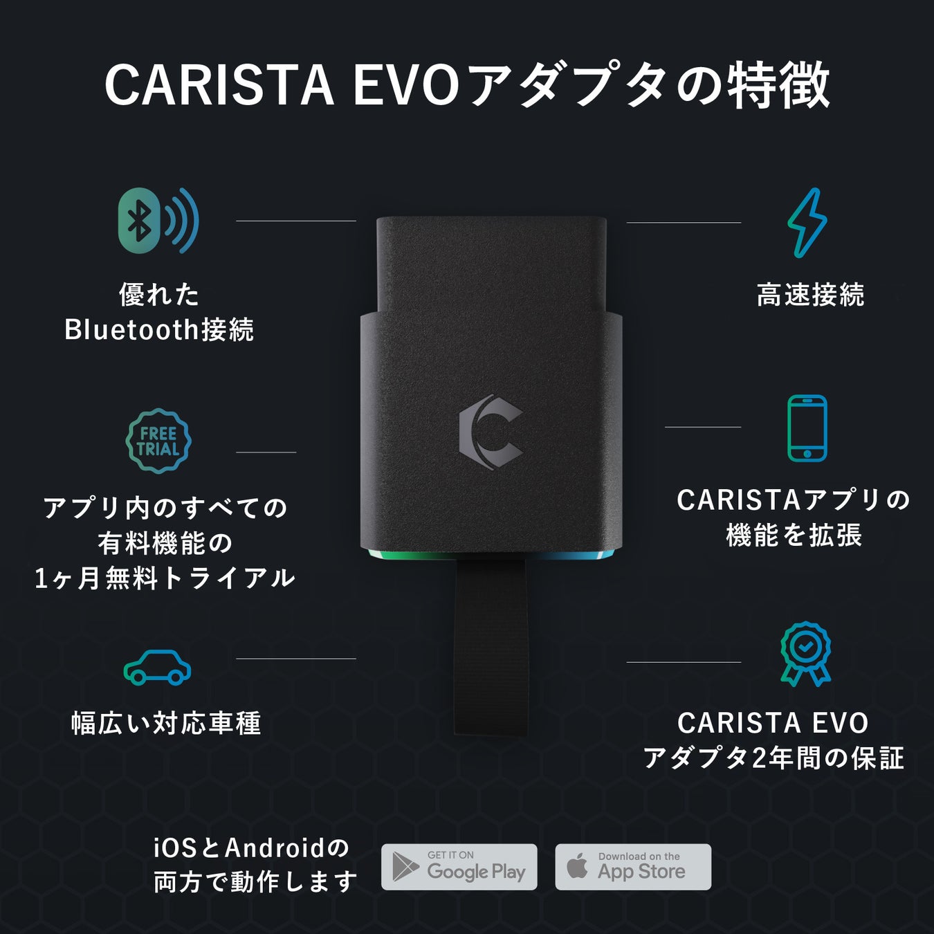 - CARISTA EVO Bluetooth アダプタをご購入いただくと、すべてのCARISTAアプリ内有料機能を1ヵ月間無料でお試しいただけます。CARISTAアプリは車両の設定の変更、故障診断と故障コードのクリア、メンテナンスやライブデータのモニターなどを行うことができます。