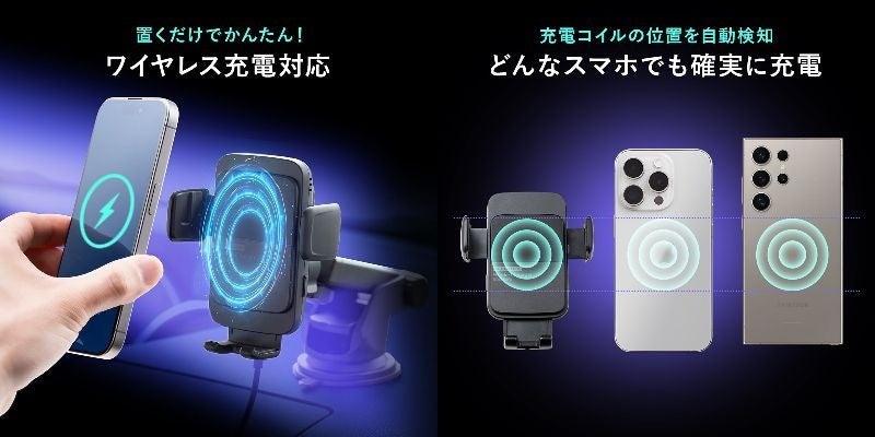 サンワサプライ株式会社(本社:岡山市北区田町1-10-1、 代表取締役社長 山田 和範)が運営している直販サイト『サンワダイレクト』では、ホルダーにスマートフォンをセットするだけで、充電コイルが自動検知し、ワイヤレス充電することができる。幅広い機種に対応し、利用シーンに合わせて形を調整することができる車載スマートフォンホルダー「200-CAR100」「200-CAR101」を発売しました。