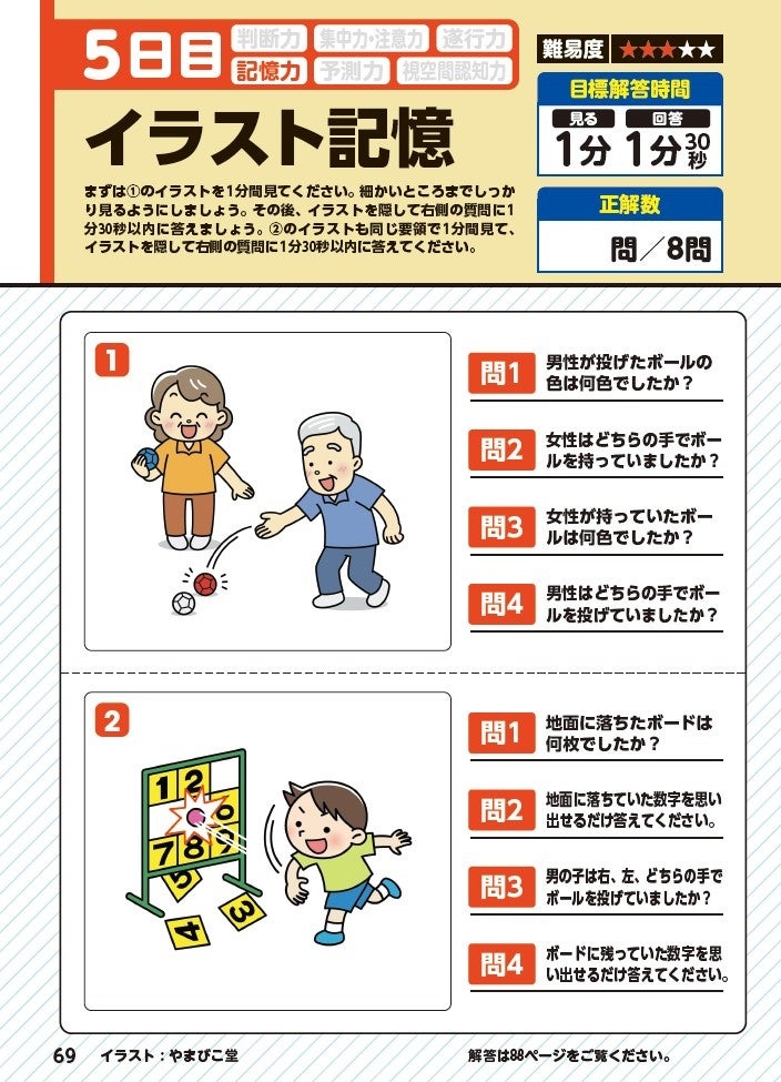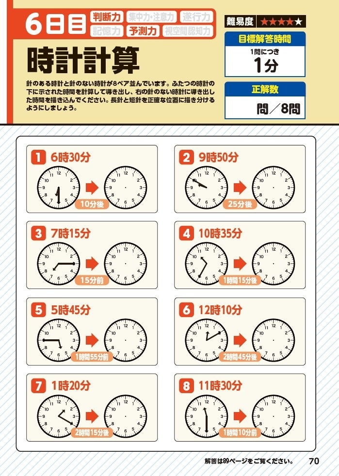 特に本書の強みは5本目に挙げた6つの「運転脳」を強化し、運転脳を鍛える「2週間ドリル」。脳神経内科専門医・塚本先生の監修により、2週間という期間を設け、集中的に実施するのが「脳内活性には効果的!」というプランどおり、1日目のドリル、2日目のドリル……と日付を入れて、わかりやすく14日分のドリルを掲載している。