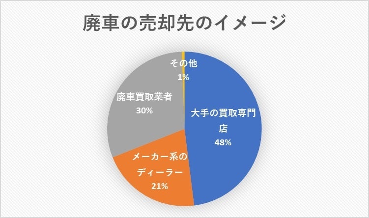 この結果を踏まえた上で、かつこの選択肢の構成であれば、アンケート実施以前は「廃車買取業者」が圧倒的多数になることを予想しました。