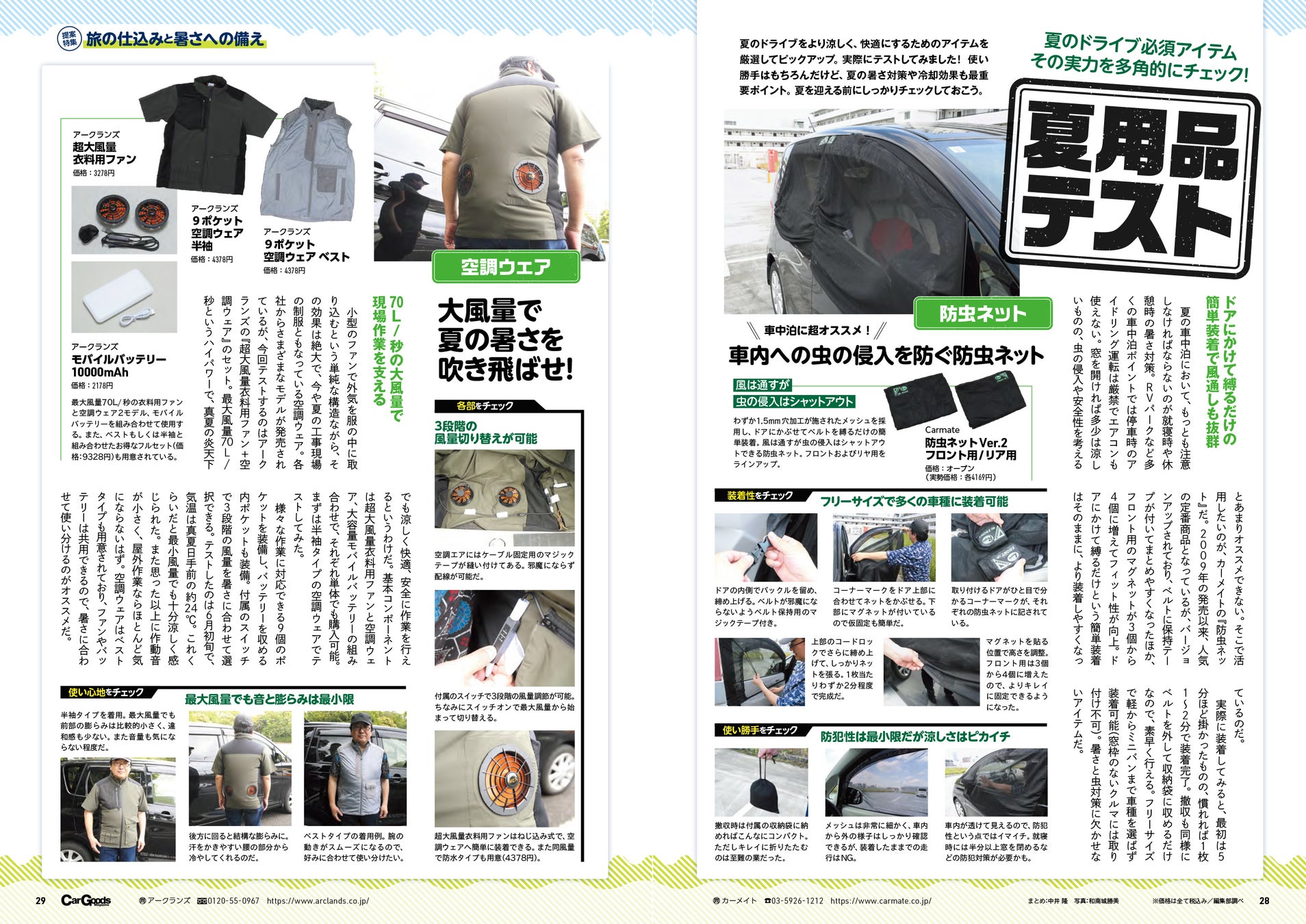 - 駐車時に使うグッズや、身につける衣料品まで、ちょっと変わった夏向けのギアもテスト形式で取り扱い。使用感をチェックだ。