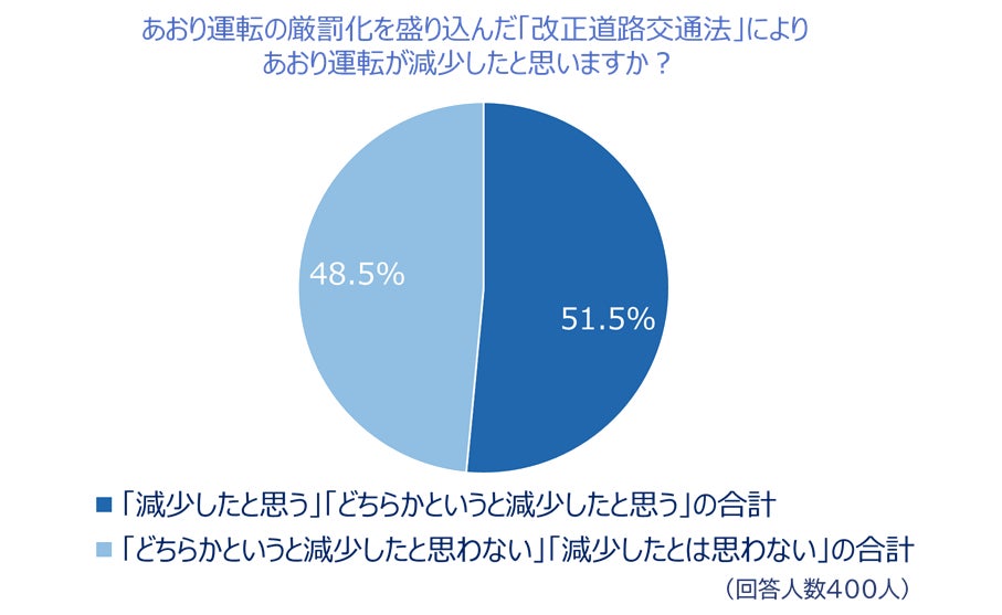 - 2. 2020年6月末に施行されたあおり運転の厳罰化を盛り込んだ「改正道路交通法」により、あおり運転が「減少したと思う」と回答したドライバーは51.5%。