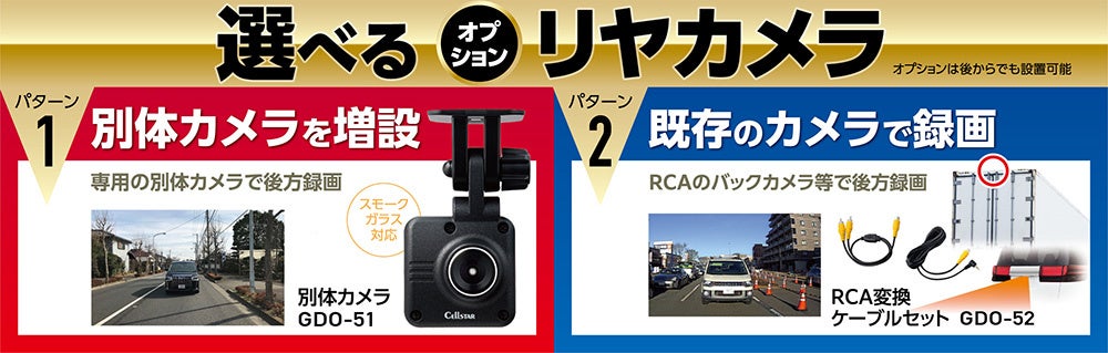 リヤカメラはオプションの別体カメラと既存のカメラが選べる