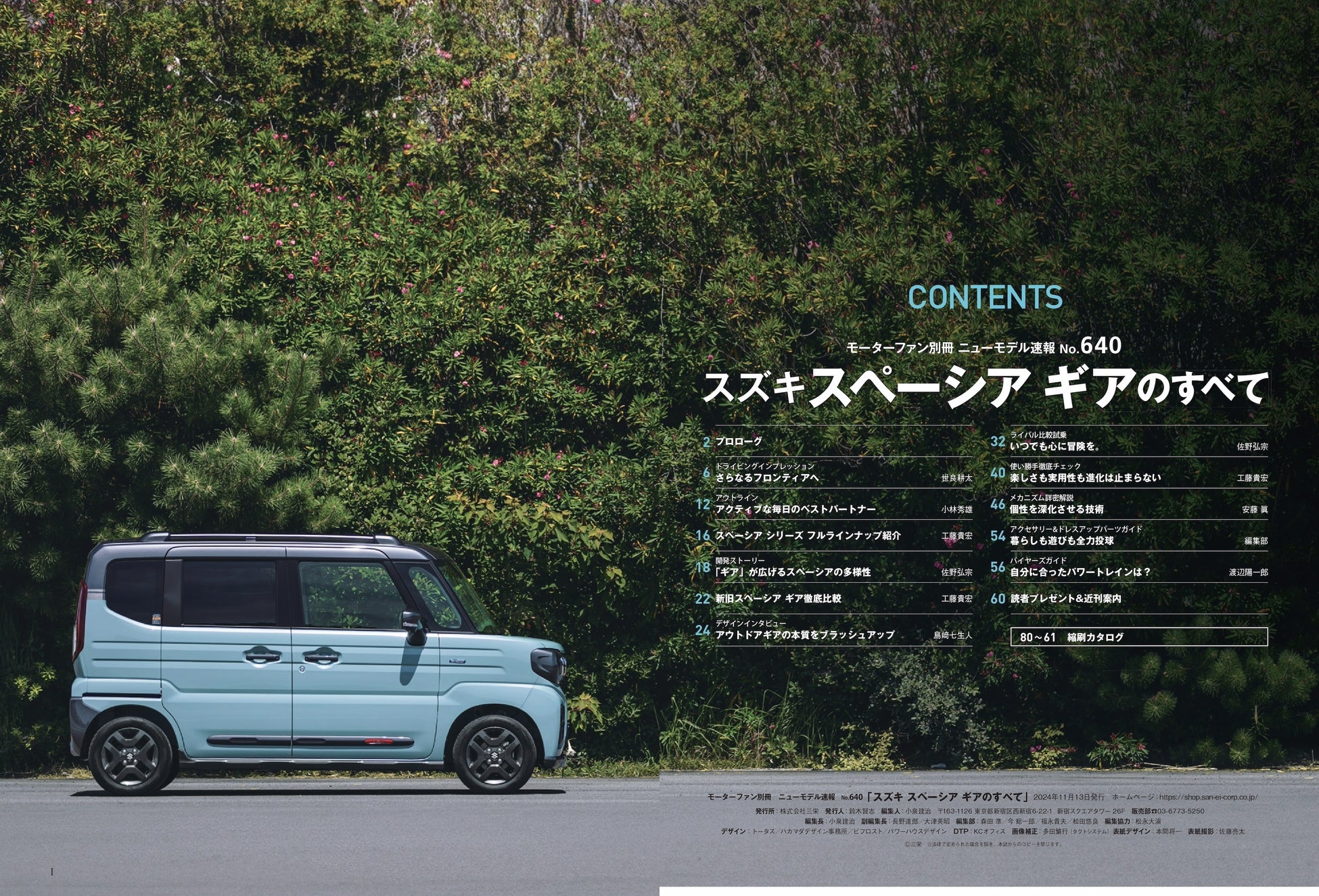 株式会社三栄(本社所在地:東京都新宿区、代表取締役社長:鈴木賢志)は、2024年9月24日より『ニューモデル速報No.640 スズキ スペーシア ギアのすべて』を発売いたします。