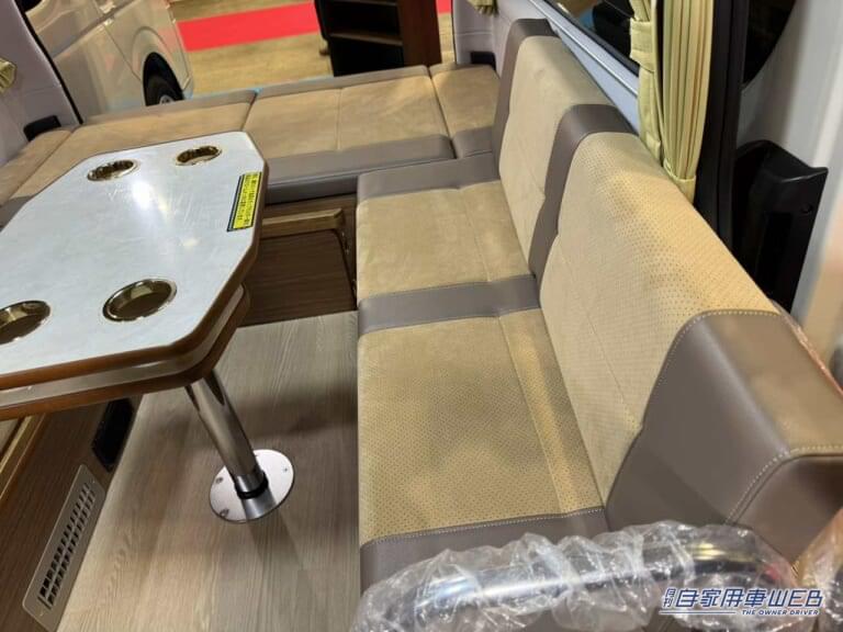 後部から見た車内はボックスシートがメインとなったレイアウト。